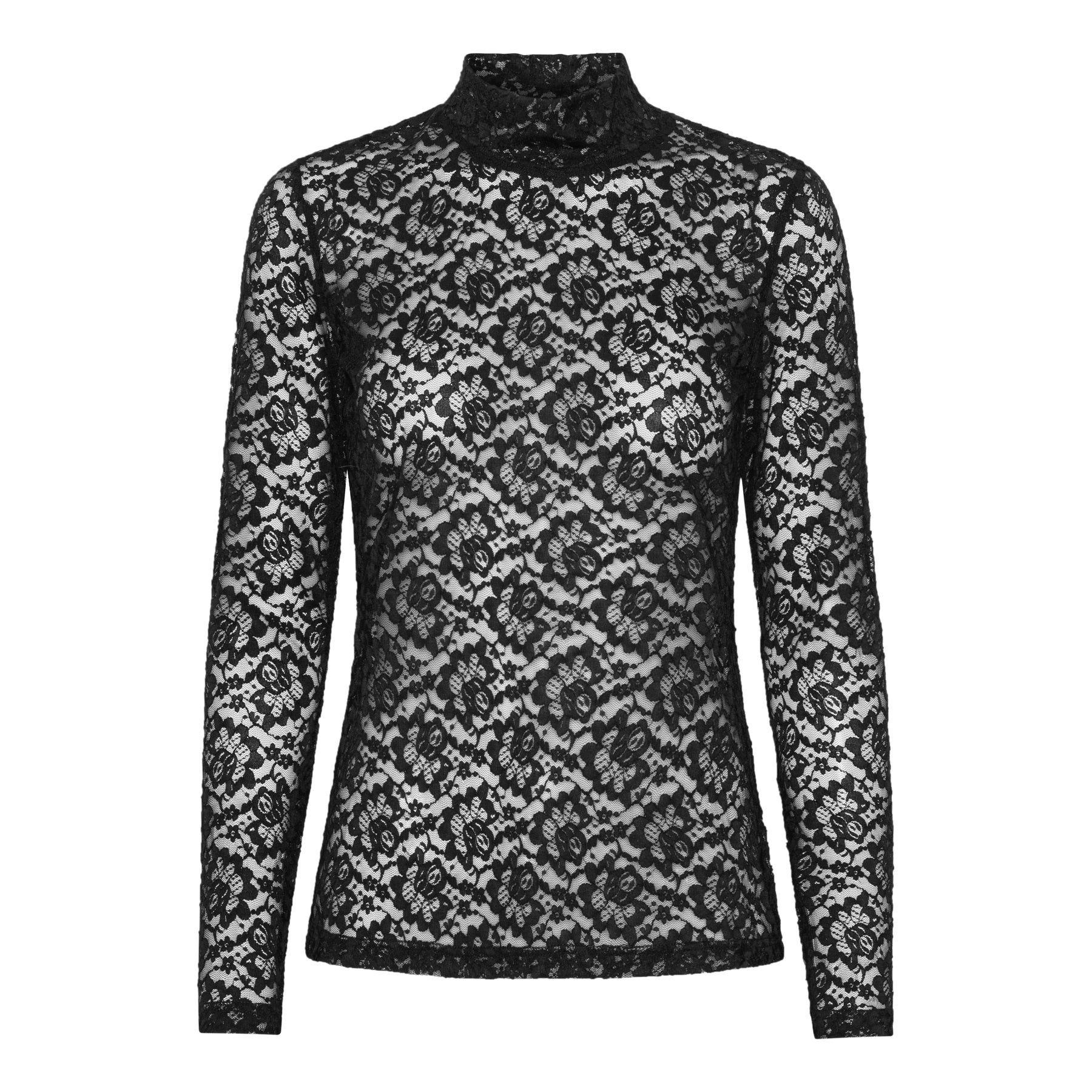Elegant og feminin blondebluse med høj hals