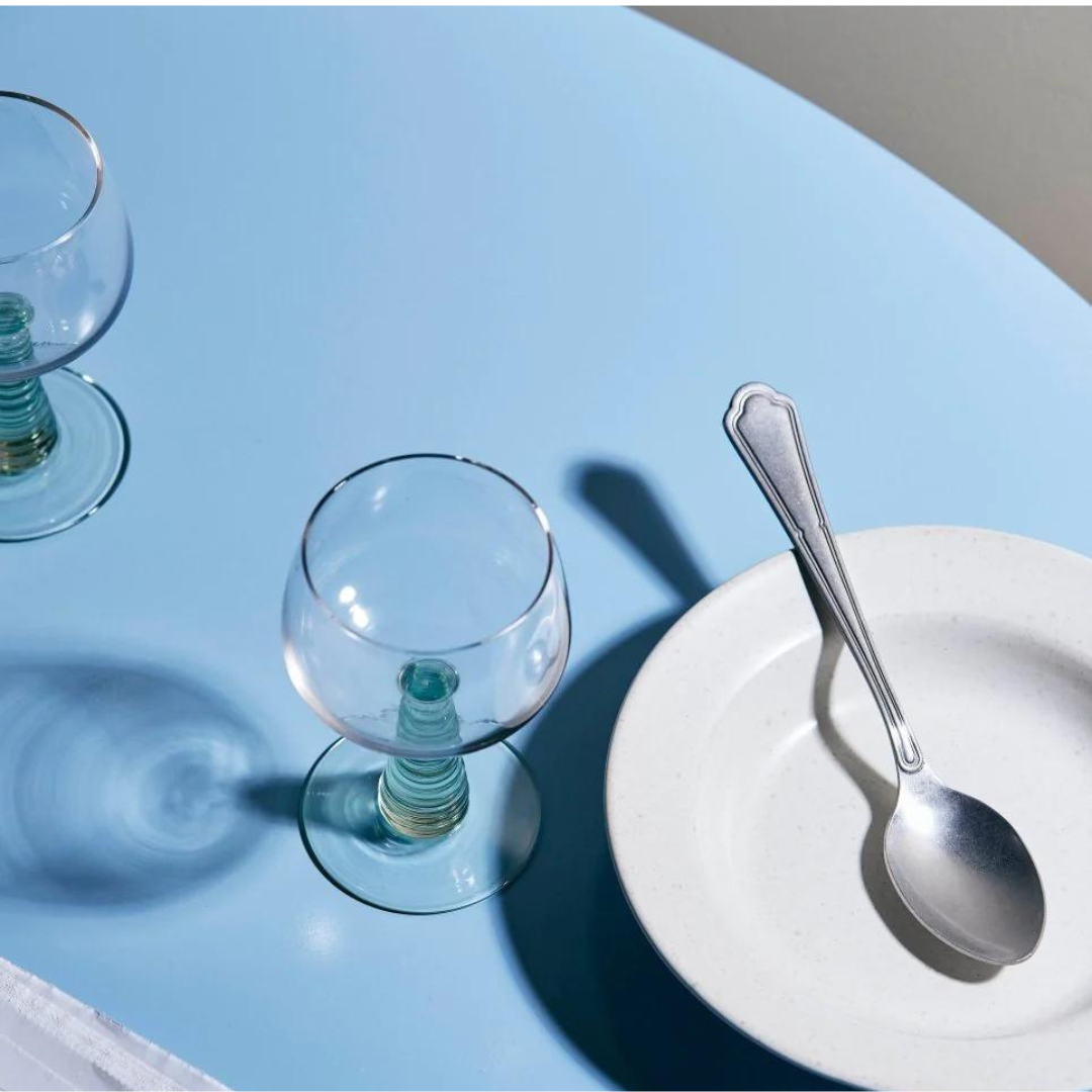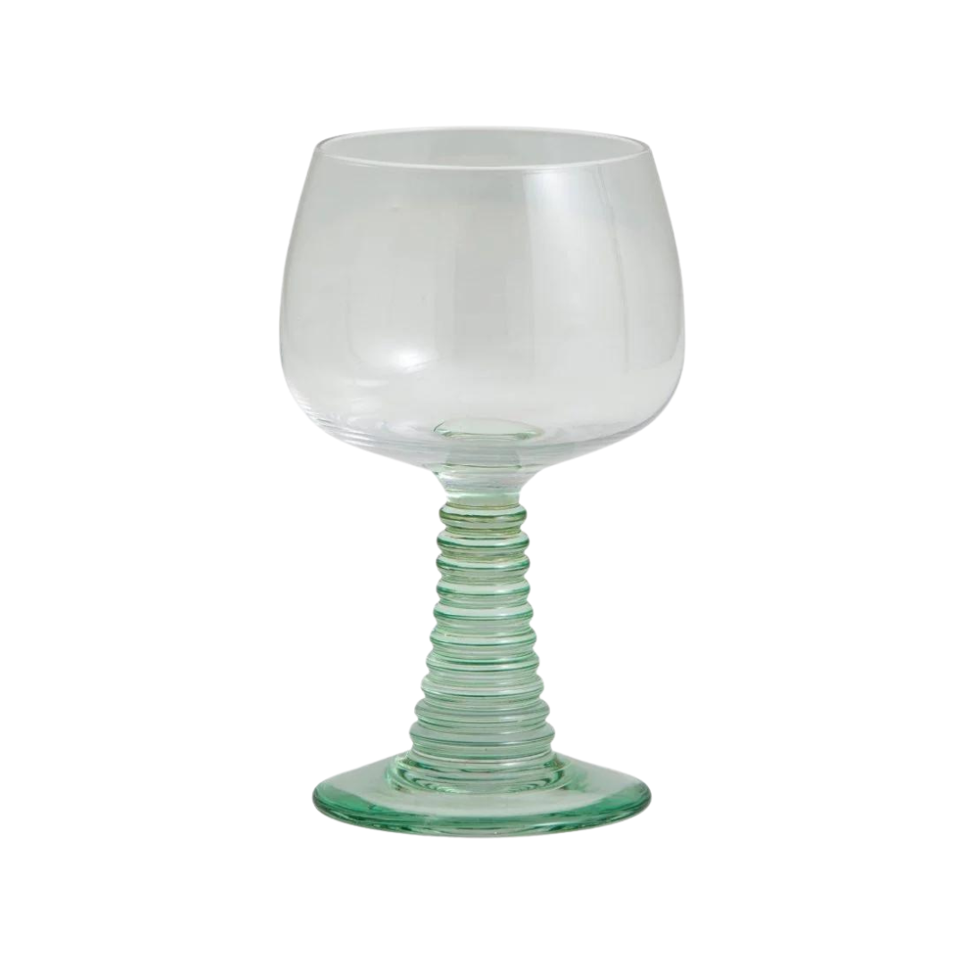 Smukt og dekorativt vinglas med en flot lysegrøn farve på den rillede stilk