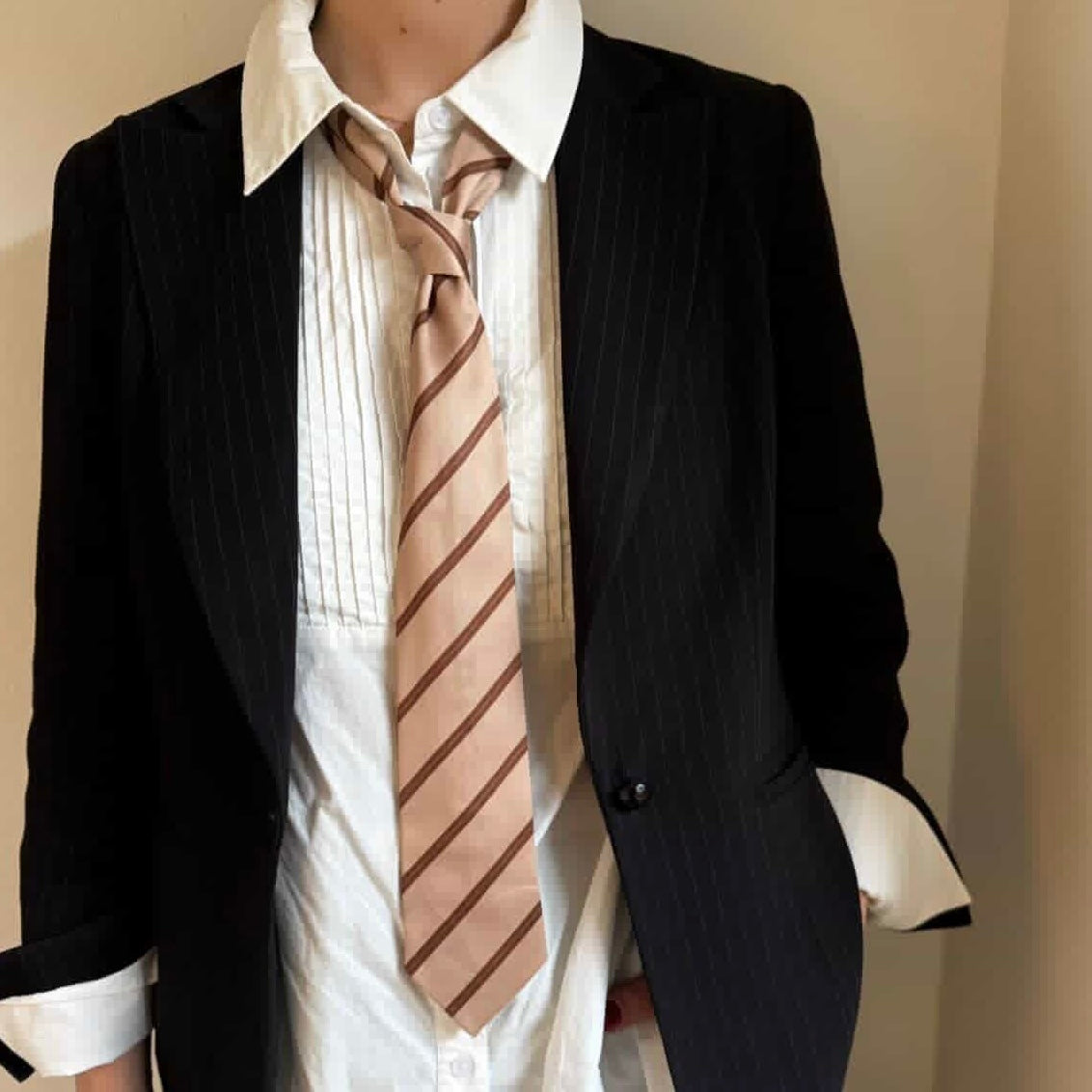 Super cool og trendy slips i beige med strib