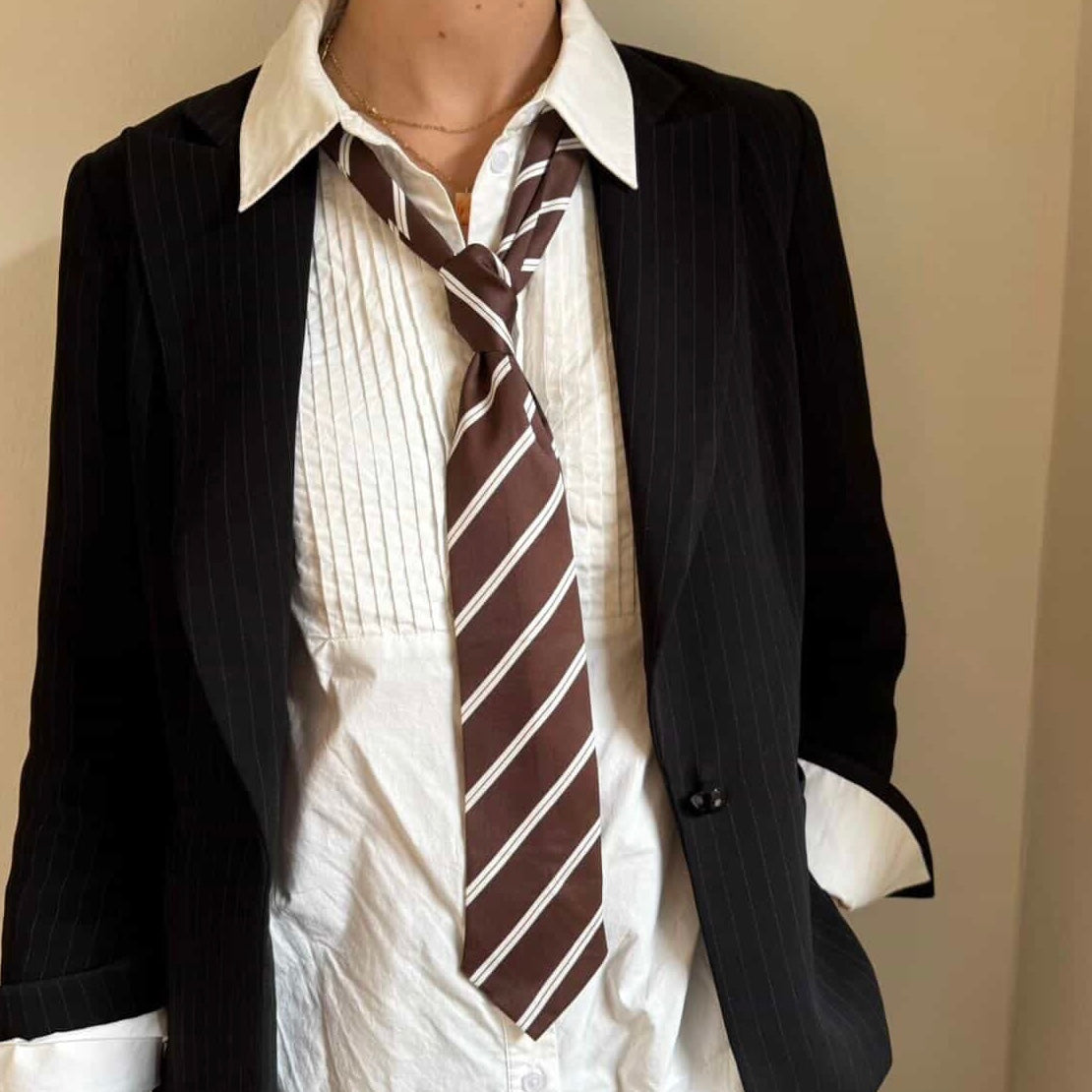 Super cool og trendy slips i brun med strib
