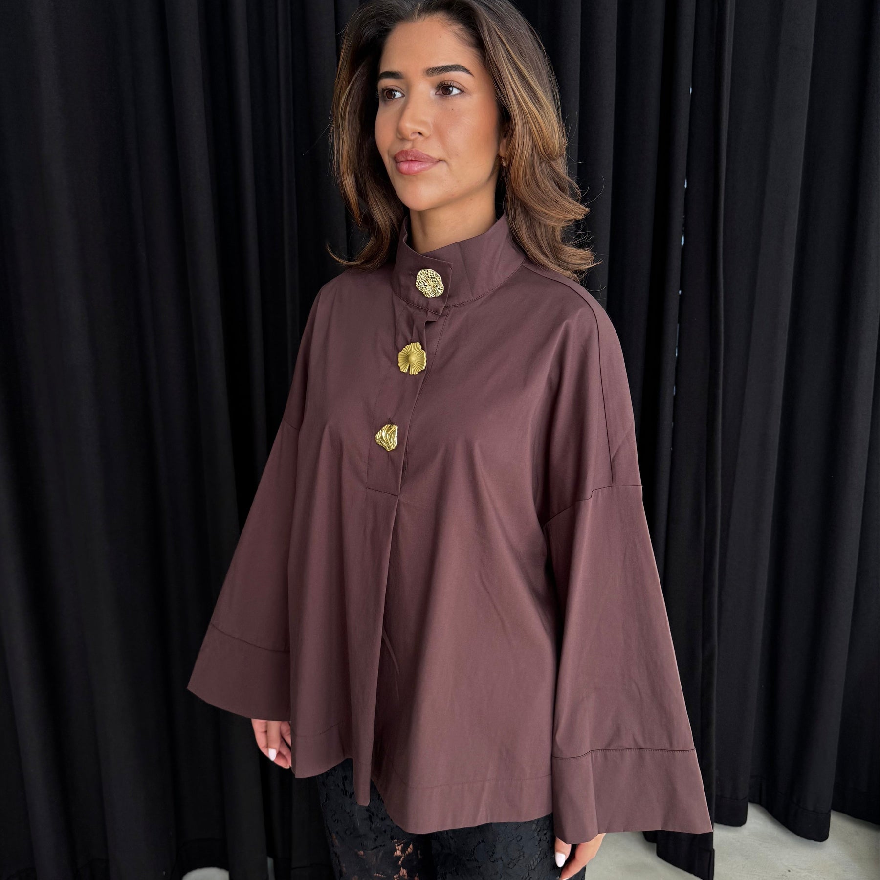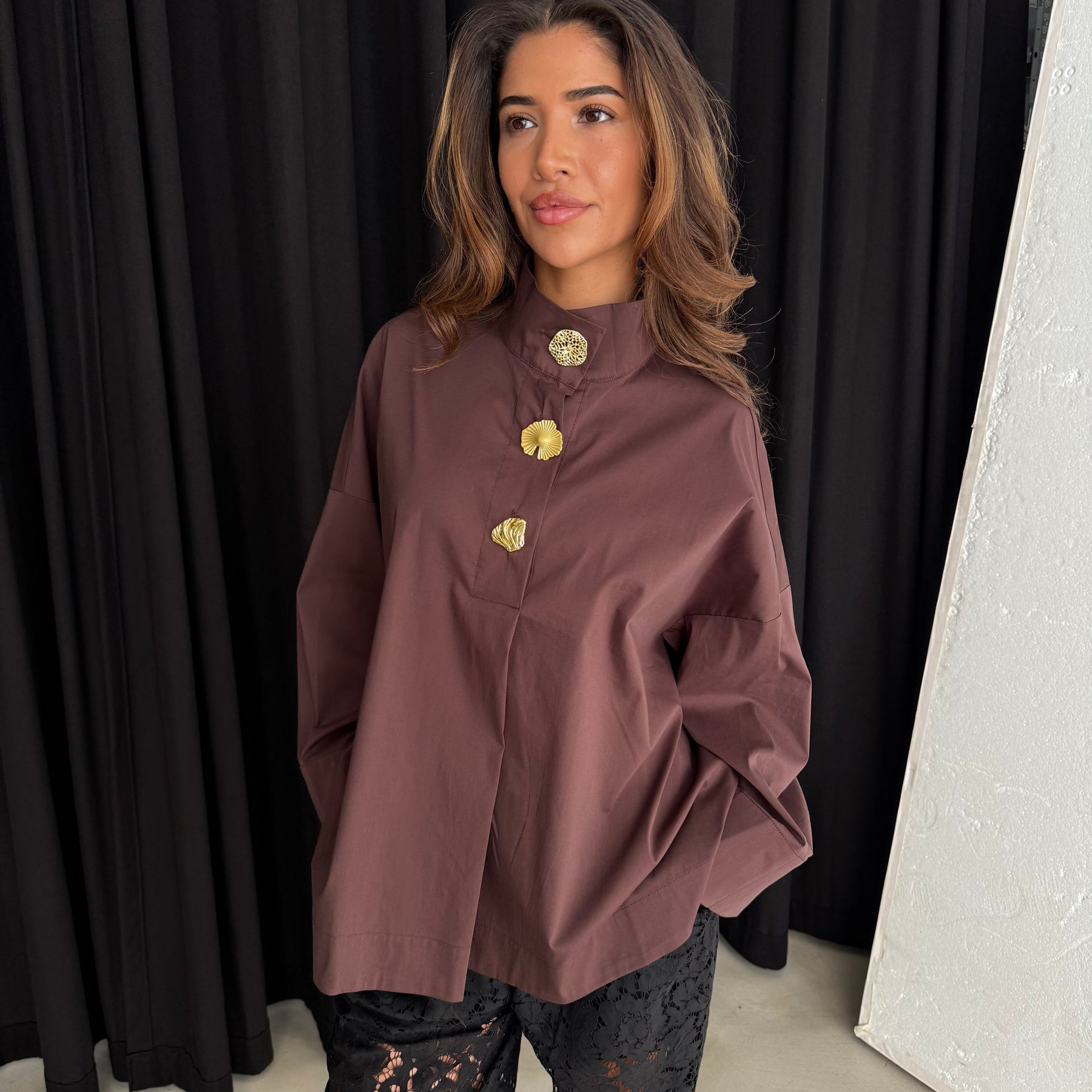 CONTINUE - SKJORTE - KLARA HIGH NECK 15088 - DARK BROWN