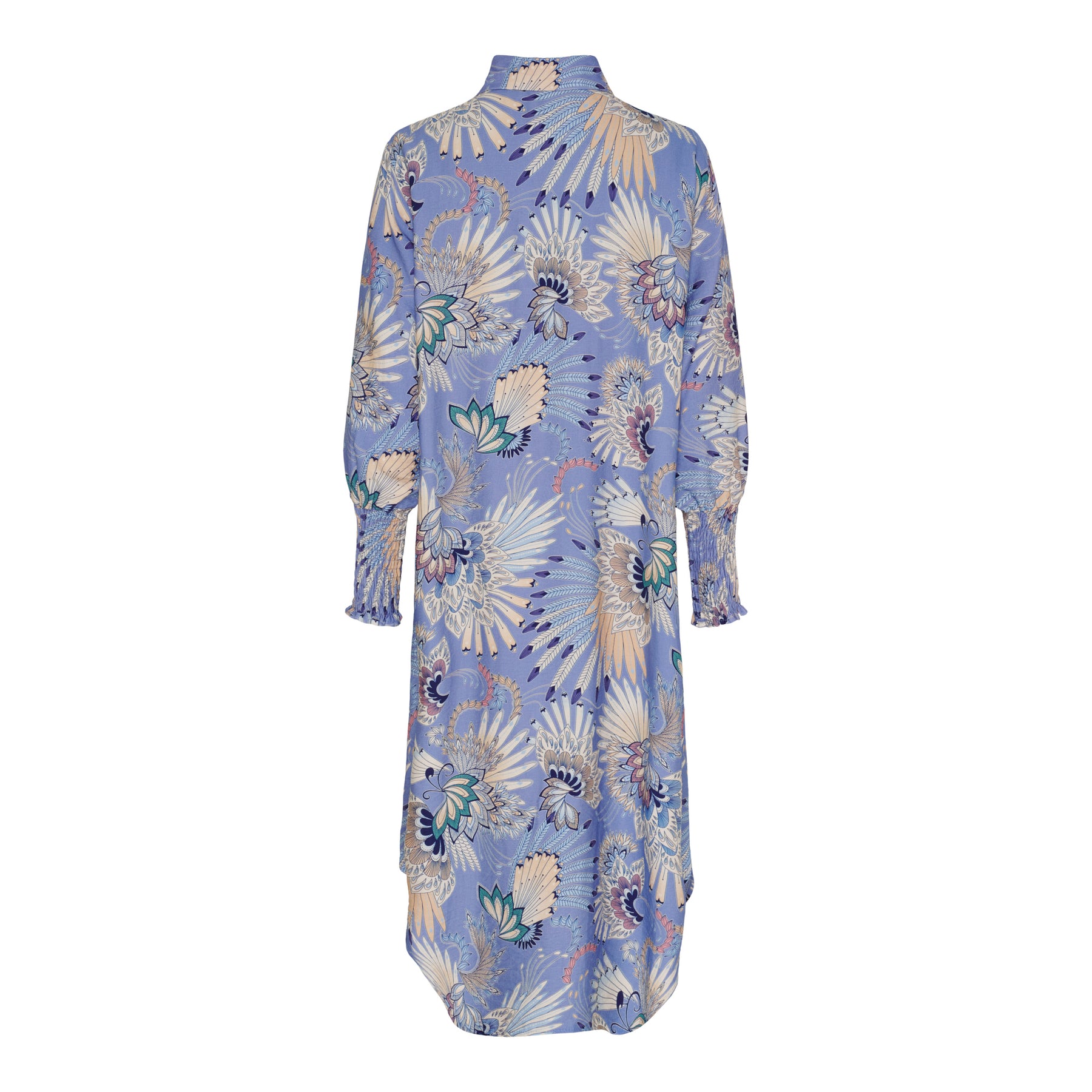 Smuk og elegant printet kjole fra Marta Du Château. Kjolen er gennemknappet, har krave og smock ved ærmer. Kan bruges til både hverdag og finere brug.
