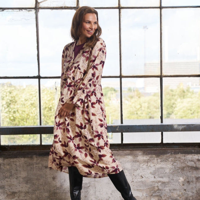 Elegant og feminin kjole i smukt print