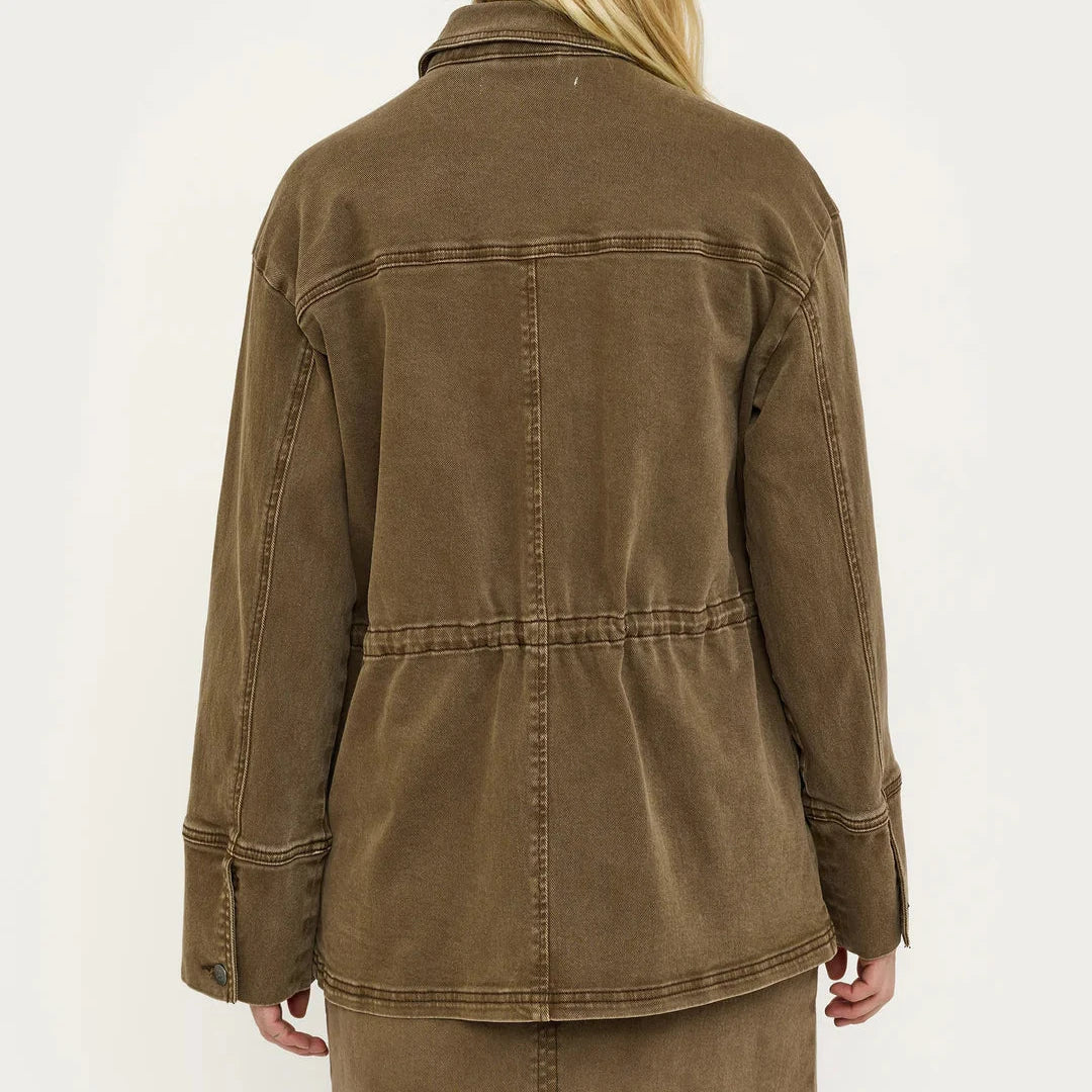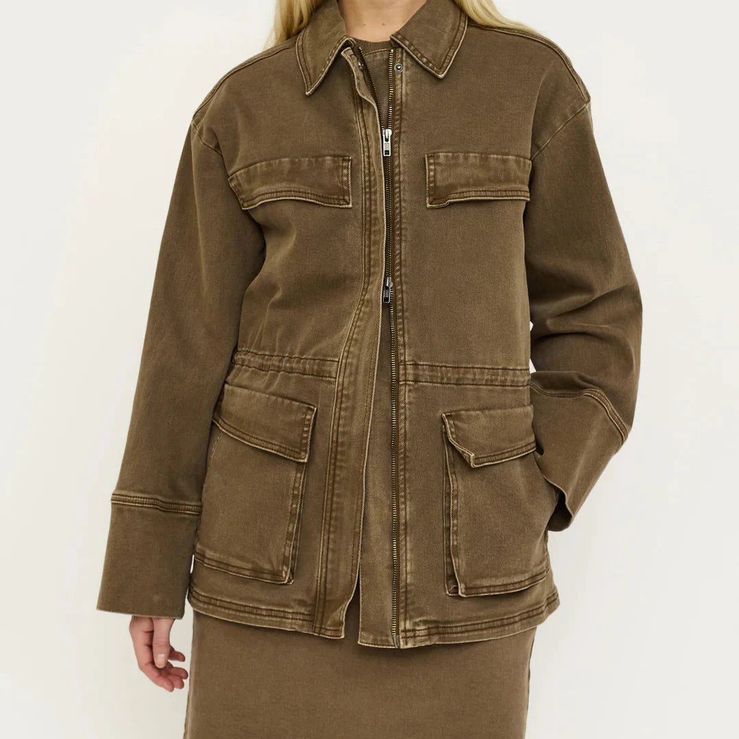 Super cool og trendy denimjakke i flot, brun farve