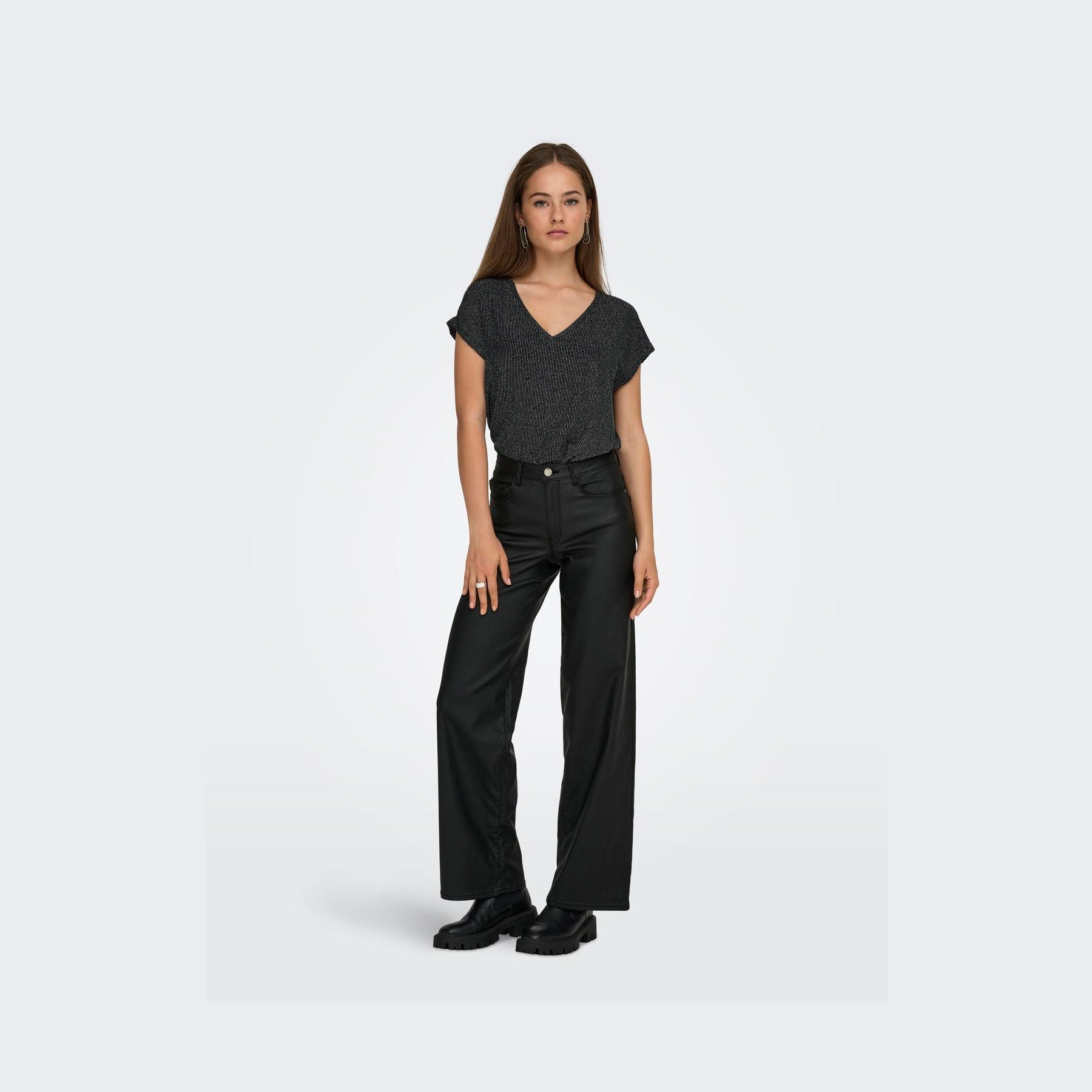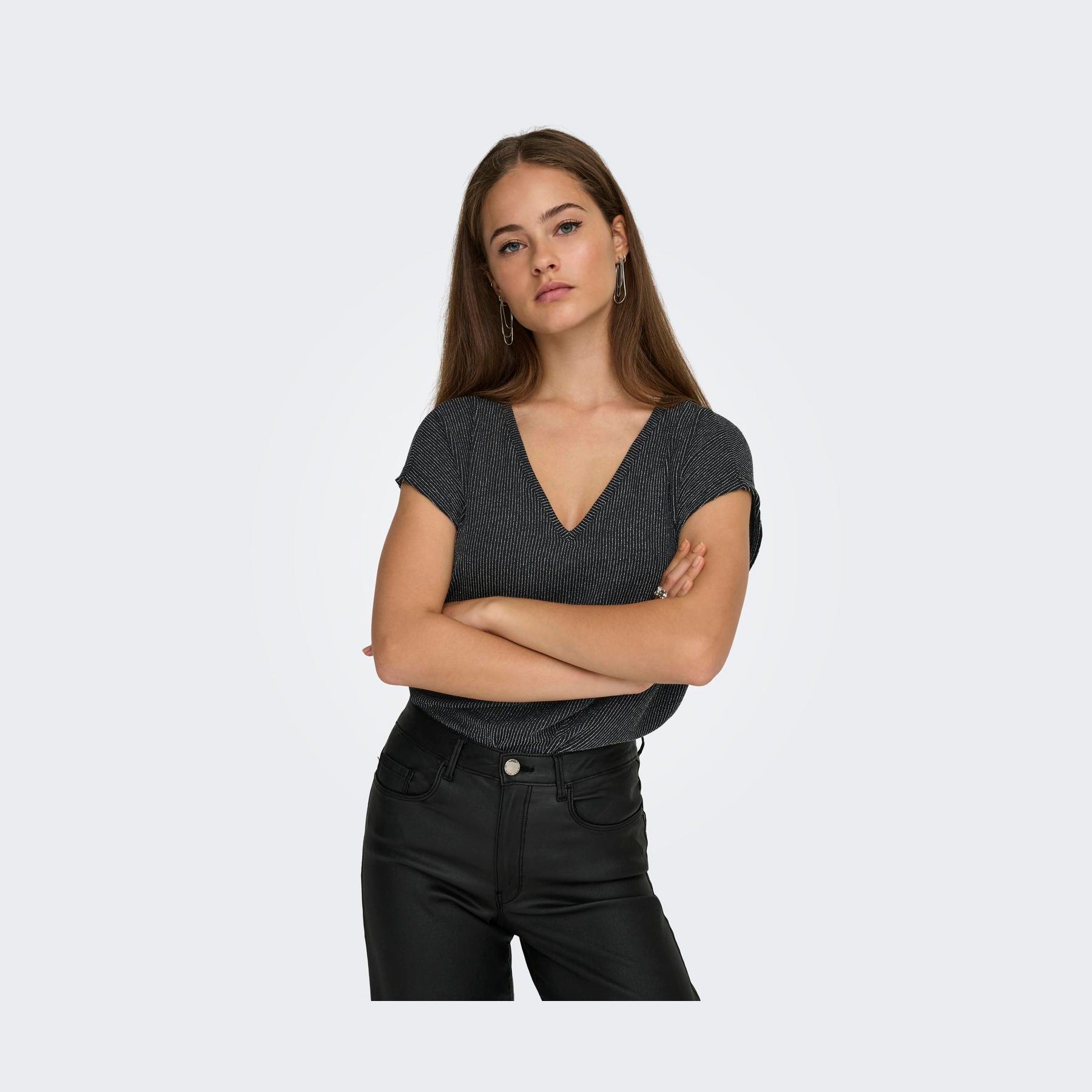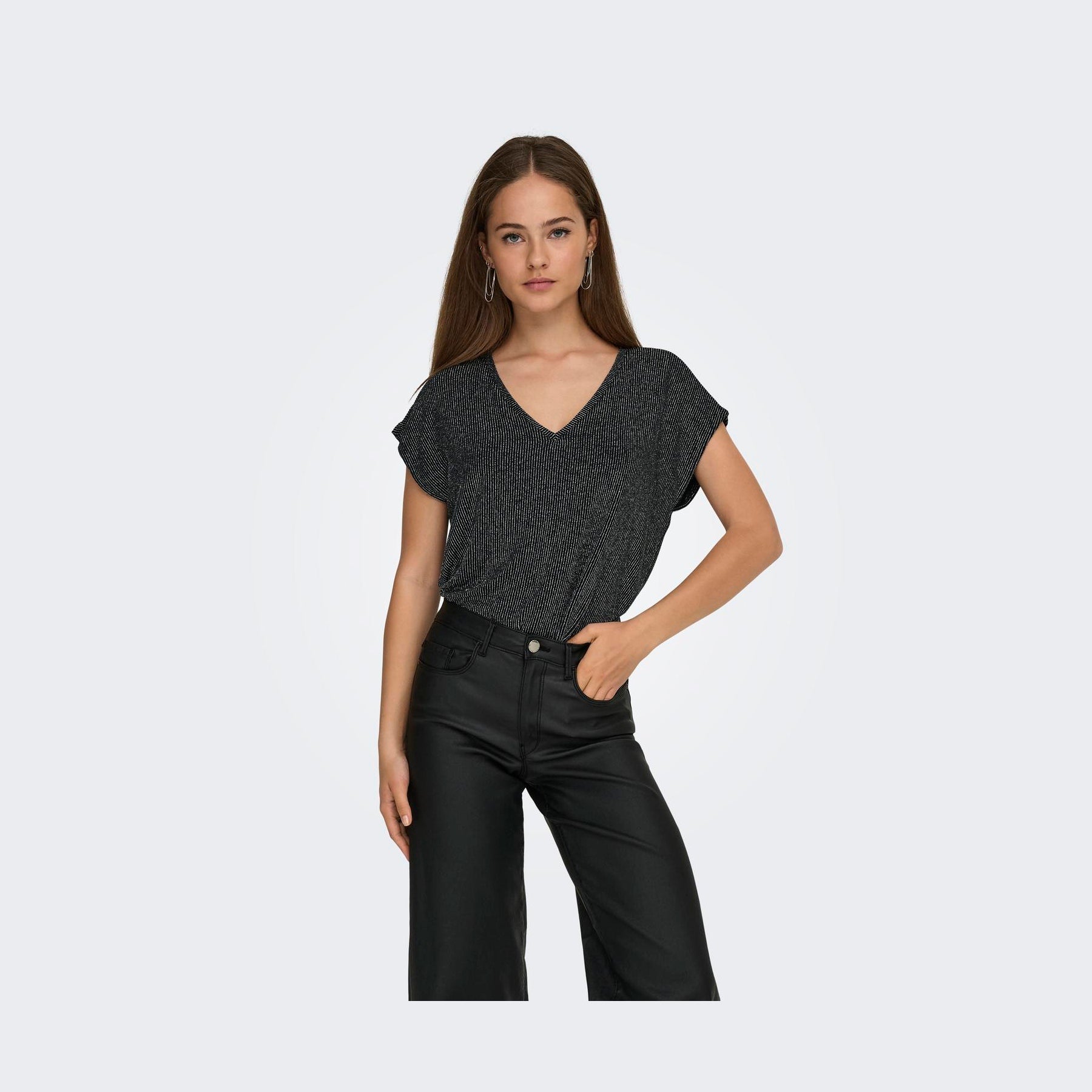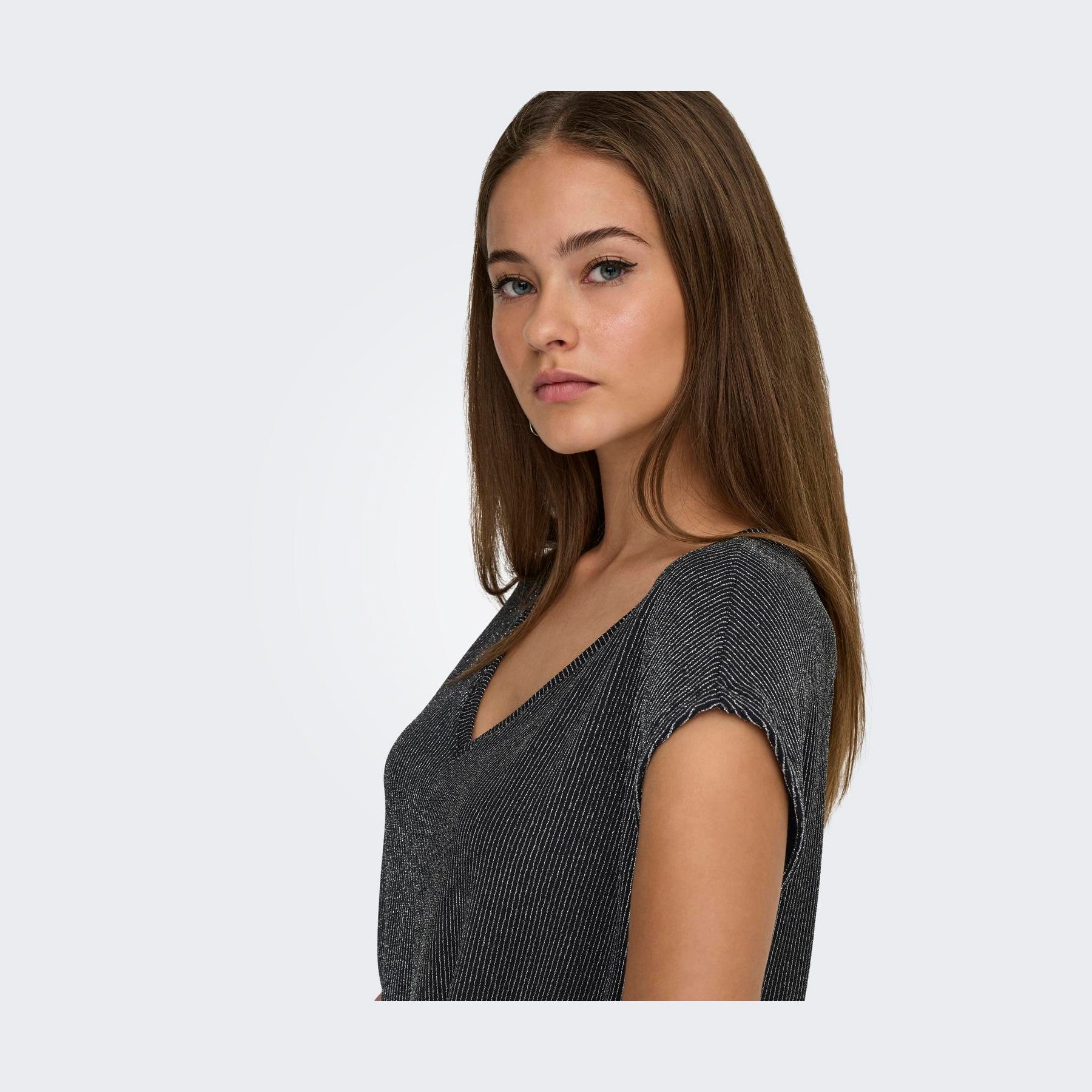 Stylenavn: ONLY CAROL S/S V-NECK GLITTER TOP BOX JRS