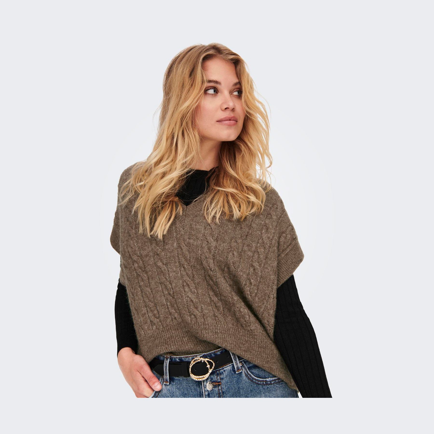 Hold dig varm og stilfuld med denne elegante vest i blød strukturstrik